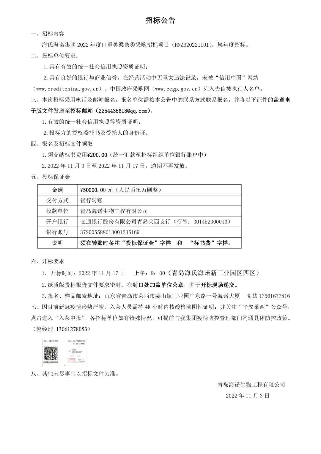 招标公告 | 尊龙凯时集团 2022 年度口罩鼻梁条类采购招标项目正式开启